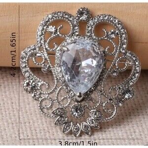 Silver toned drop shape brooch