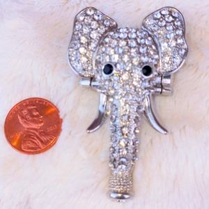 Large Elephant Rhinestone and Silver Colored Metal Bling Ring - Stretch Elastic - one size fits all - GORGEOUS 2 3/4 inches long!!! Elephant Jewelry. Animal Jewelry. Estate Jewelry. Very Classy and Elegant. Beautiful Vintage Cocktail Ring.