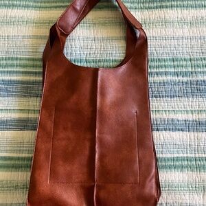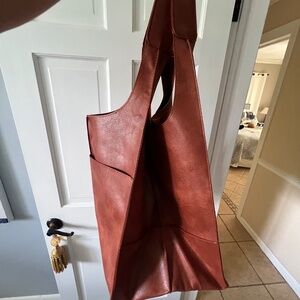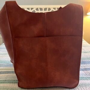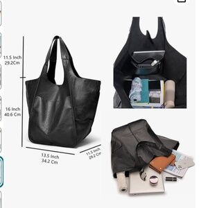 Made of soft double-layer PU leather, reinforced with double-thread sewing. Dimensions 27.5"H (including handle 11.5") x 13.5"L x 11.5"W.