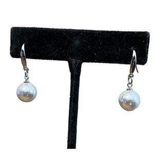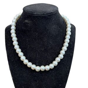 Large Faux Pearl 16" Necklace Sterling Silver Clasp With Pierced Pearl Earrings