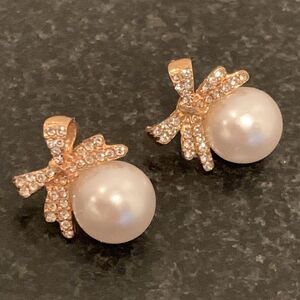 Large Faux Pearl & Gold Bow Crystal Earrings for Teens & Women Vintage Style NEW