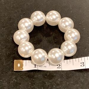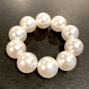 Handmade with large, lustrous faux pearls, this large statement stretch bracelet will make your outfit standout.