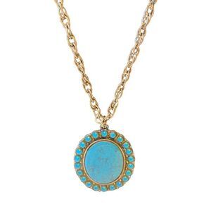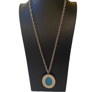 Large Faux Turquoise Oval Pendant on Long Thick Silver Rope Chain.