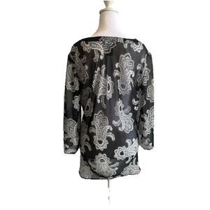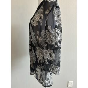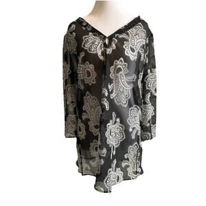 Large Floral Blouse Satin Tunic Boho Sheer artsy Fairy Swim Coverup Witchy Sz 12