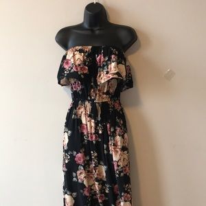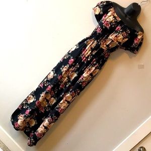 ๐ด DESCRIPTION:Large Floral Off The Shoulder Dress with 2 side slits, tassel at neck, elastic waste, maxi dress
