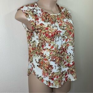 Large Floral Orange Brick Red Joe Fresh Short Sleeve Blouse Lightweight