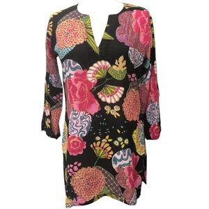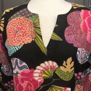Large Flower Print 3/4 Sleeve Tunic Size: M