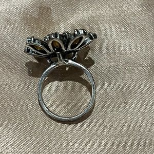 Large Fossil Rhinestone Floral ring
