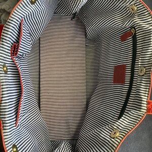Large Genuine Leather Tote Bag – Burnt Orange – Striped Interior
