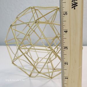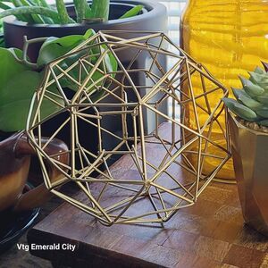 Large Geo Metal Decorative Sphere Sculpture 15” Circumference Goldtone 3D Orb