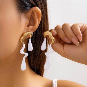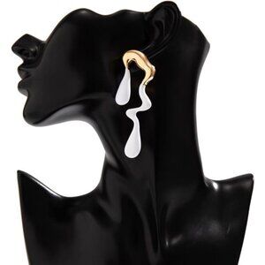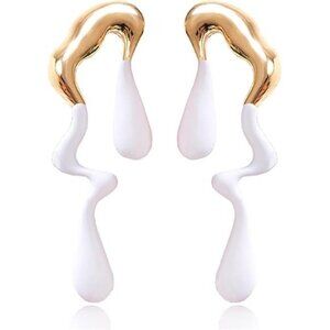 Make a bold statement with these geometric teardrop earrings designed with an irregular, eye-catching shape. Available in gold, silver, or chic two-tone patchwork, these earrings bring a unique flair to any outfit.