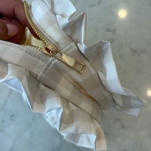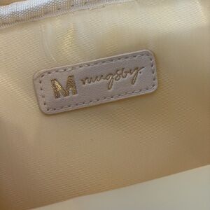 Never used, so cute to personalize with patches or use as is. Gold hardware! It’s big, fits a lot! Perfect for traveling, makeup, accessories! Approx 11x7