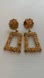 Bold gold statement earrings with a gold nugget textured design. Perfect for adding a touch of high rolling casino glamour. These are 18k gold plated but there are some dark spots of wear on them that is visible in the pictures. Price reflects the damage. They could be repaired with a little gold paint. Really fun vintage 70’s retro 80’s style.