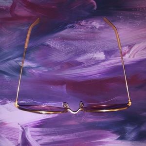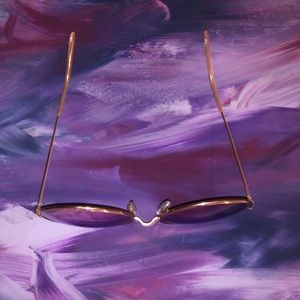 These never been worn gold rimmed circular sunglasses are colored in an ombré from a dark blue to light pink in the lenses to provide style and a pop of color to any outfit.