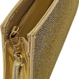 Large Gold Satin Rhinestone Wristlet Clutch for Women Evening Party