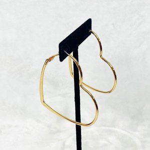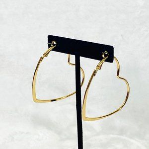 Large gold tone heart shaped piecred earrings. Post fits through a hole on a hinged back. Size at widest points is approx. 2.25" x 2.25". Finish is great. No wear on plating. Unbranded.