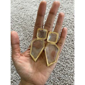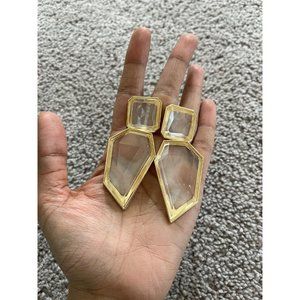 Large Gold clear earring chunky white acrylic crystal bold 3.75”
