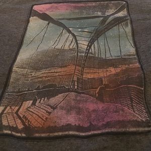 This large sweatshirt is from Mossimo Supply Co. and features a decal of what seems to be the Golden Gate Bridge. The sweatshirt is grey, and the decal is pink/blue.
