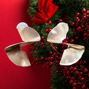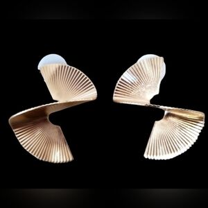 Large Goldtone Fan Mushroom Twirl Dangling Earrings