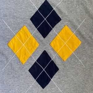 Large Gray Tee-Shirt with Yellow and Navy Diamonds Argyle