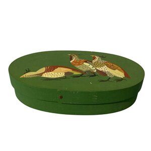 Large Green Shaker Style Box With Hand Painted Partridge Quail Birds
