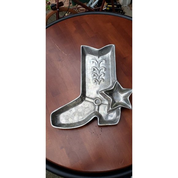 Large HOLLAND BOONE Alloy Pewter Western Cowboy Boot Star Center Piece Bowl