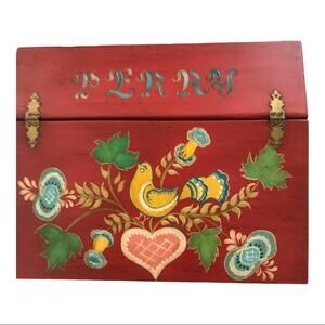 Large Hand Painted Folk Art Partridge Large Wooden Box