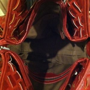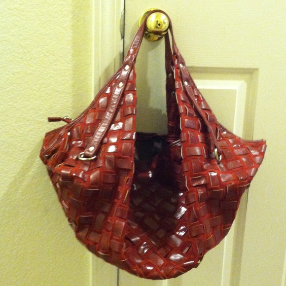 Beautiful Ruby Red Bag with candy apple colored fabric woven throughout.