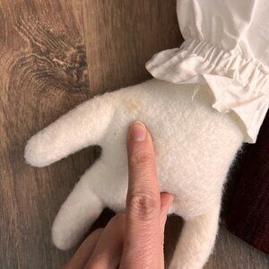 Condition: Very good used condition. This is handmade and there seems to be some glue residue in the mouth and a small tan mark on the hand (pictured)