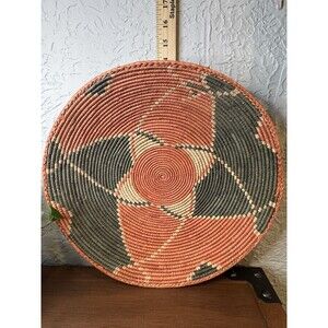 Large Handwoven Coiled Boho Style Basket Wall Decor Black Rust 14”