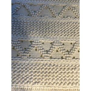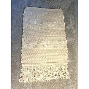 Large Handwoven Tapestry w/ Fringe Home Decor Boho Farmhouse Morracan Cream Gold