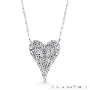 Large Heart CZ Crystal Pave Love Charm Necklace in 925 Sterling Silver w/Rhodium