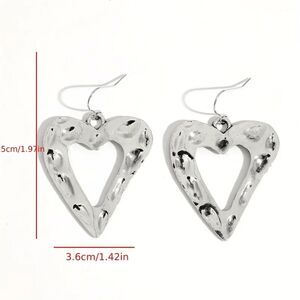 Pair Asymmetrical Design Heart Shaped Dangle Earrings With A Fashionable Feel Valentines Love Hammered Silver Tone