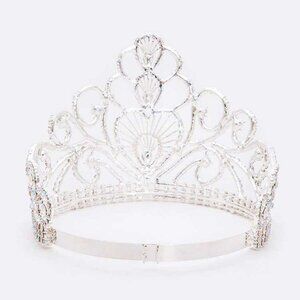 Large Iconic Rhinestone Tiara - Rhodium/Clear