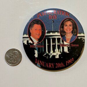 Large Inauguration Day Button Badge Pin Bill Clinton Hillary Clinton 1993