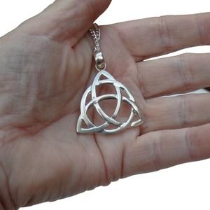 This Large Triquetra Necklace is not only a symbol of Celtic heritage but also a versatile and elegant accessory that complements both casual and formal.