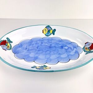 Large Italian Ceramic Desuir Hand painted Oval Serving Plate Platter 18.5”x12”