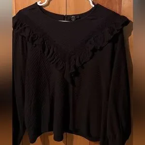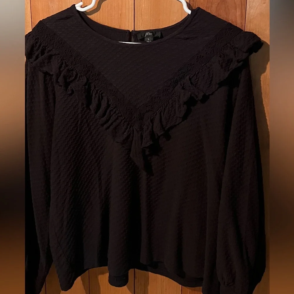 Large J Crew Black Ruffle Top