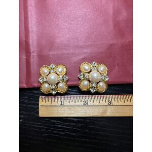 Large JOAN RIVERS Imitation Pearl & Rhinestone Clip Earrings Designer Signed