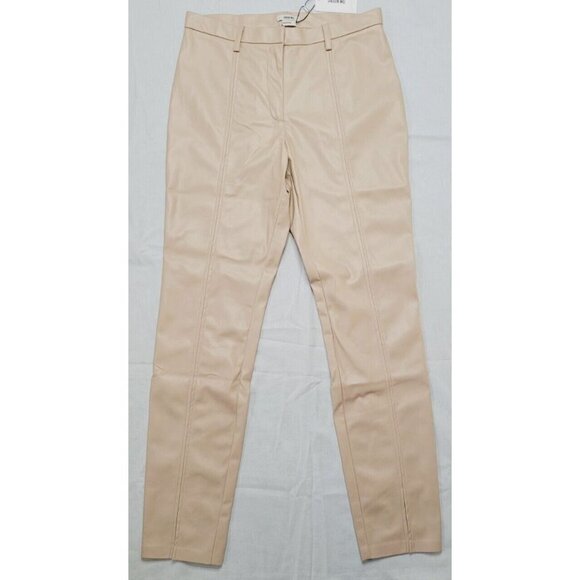Large Jason Wu Tan Soft Vegan Faux Leather Skinny Pants Split Hem High-Waist
