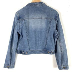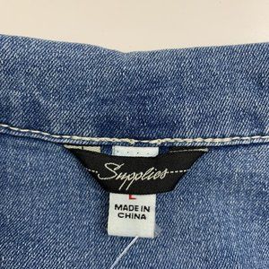 Large Jean Jacket Button Front Denim Coat Faded Womens Supplies