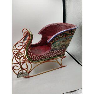 In the whimsical world of Christmas decor, this Jim Shore sleigh figurine enchants with its vibrant colors and intricate designs. Handcrafted with love, it tells tales of festive nights and dreams taking flight. Each painted detail whispers stories of holiday warmth, inviting you to journey through your own winter wonderland.