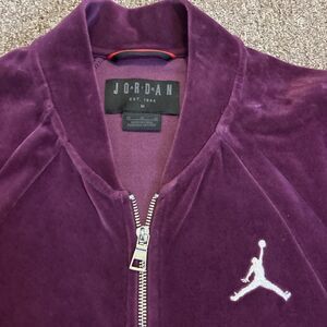 Large Jordan Velour Velvet Purple Burgundy Full Zip Track Jacket Medium