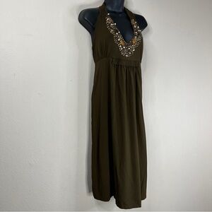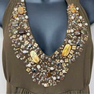 Large Joyous & Free Brown Beaded V Beck Dress Knee Length Stretch Event Party