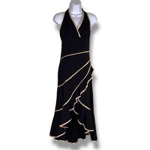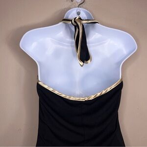 Large Juniors Vintage Y2K La Belle Dress Black Gold Satin Halter Layered Retro