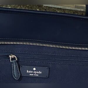 Includes a large Kate Spade tote bag and matching smaller bag. The main body of the larger one measures 17” across. It can snap on the sides to make it 14”. It measures 10.5” tall. The smaller bag measures 10.75” across and 7.25” tall. Both are in excellent condition.