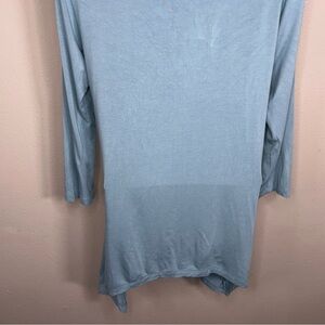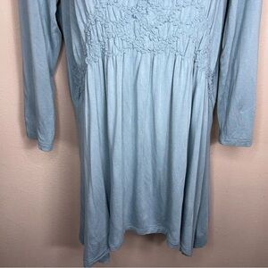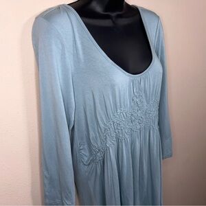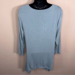 Large Kenar Blue Top 3/4 Sleeve Embroidered Accent Stretch Boho Bohemian