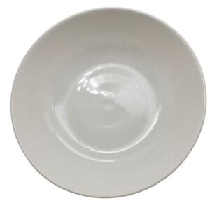 Nice, large serving bowl from Homer Laughlin. The Kenilworth bowl is white with a brass foot/pedestal. It is perfect for the holidays or every day.