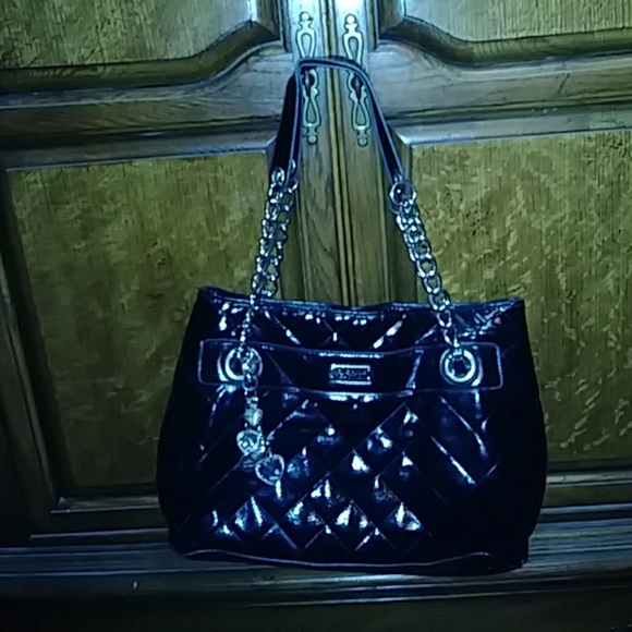 Large tote with a shiney quilted pattern... 1 zipper pocket inside as well as 2 small pockets... A very beautiful purse only used a handful of times...used in very good condition