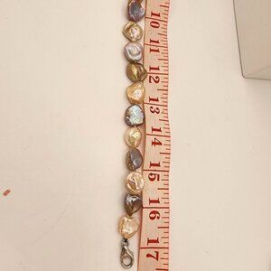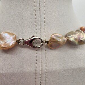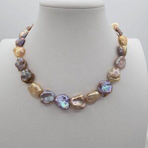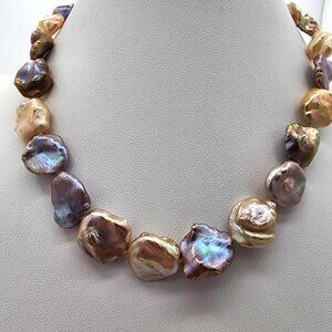Large Keshi Baroque Pearl Necklace And Bracelet Set, Rainbow Colors 925 SS